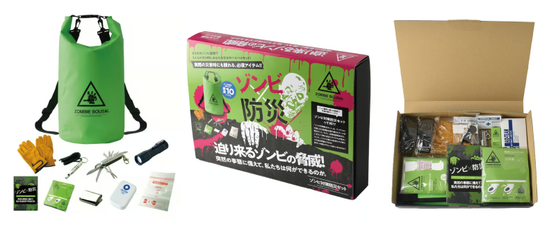仮想のゾンビ出現シナリオをもとに、実際の災害時にも有効なアイテムを厳選した防災ラインナップ。