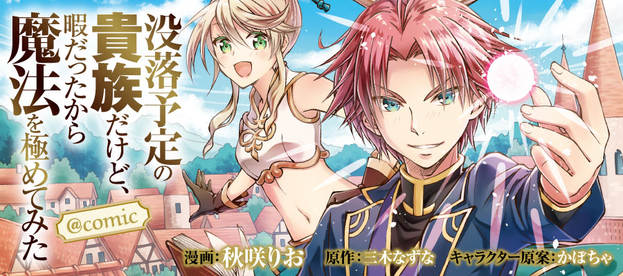 「没落予定の貴族だけど、暇だったから魔法を極めてみた」マンガ : 秋咲りお / 原作 : 三木なずな / キャラクター原案 : かぼちゃ